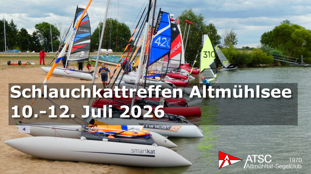Jedes Jahr findet das beliebte Schlauchkattreffen des ATSC1970 am Altmühlsee statt. Das Treffen 2026 wird vom 10. – 12. Juli stattfinden. Diese Veranstaltung ist offen für Schlauchkatamarane aller Hersteller. Die Anmeldung wird an dieser Stelle ab ca. März 2026 möglich sein.